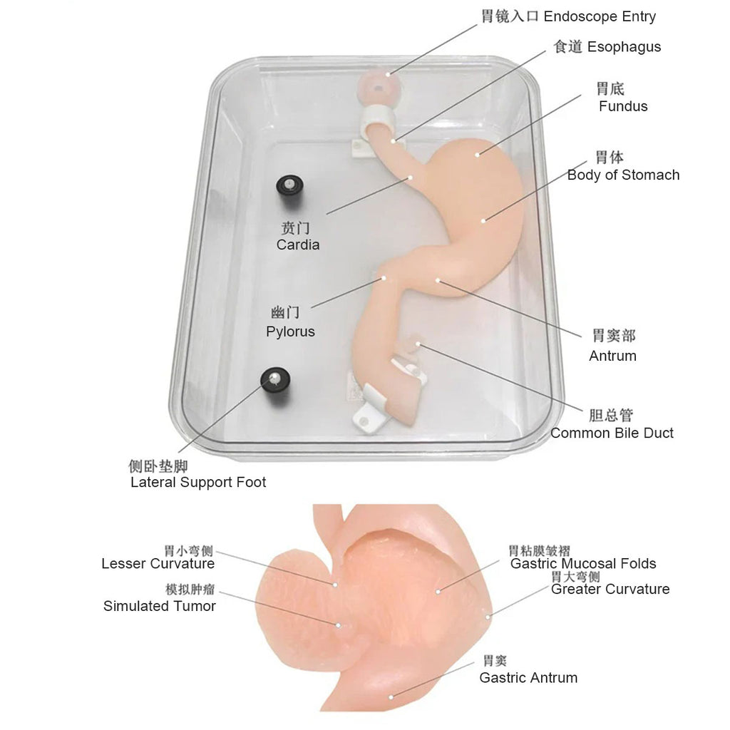 Nota: El estómago simulado está hecho de un material suave similar a la piel, que es flexible y elástico, lo que permite un entrenamiento repetido en cirugía endoscópica.