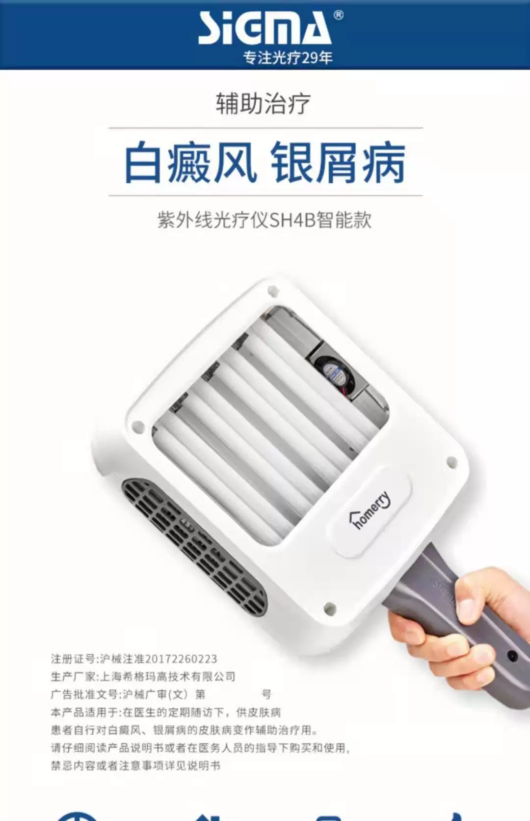 Denuncie o ItemO SIGMA SH4B foi projetado para tratamento de fototerapia em casa sob a orientação de um profissional médico. É eficaz para tratar condições de pele como vitiligo, psoríase, eczema, micose fungoide, dermatite atópica, neurodermatite e outros problemas dermatológicos.