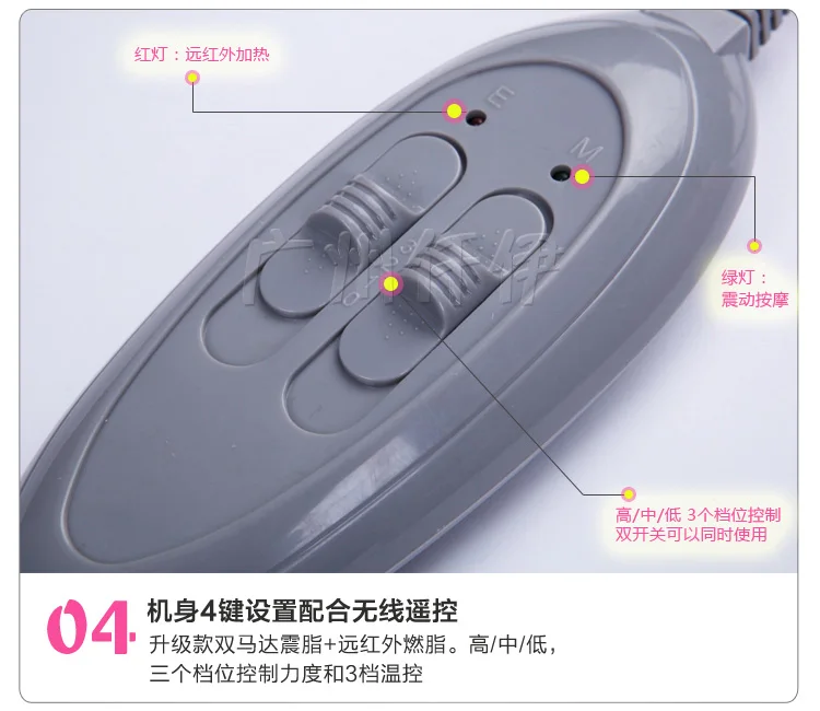 Разложение сжигает жир. В этом продукте используется инфракрасное тепло для разрушения принципа сжигания жира, вы не можете использовать жидкий крем, не беспокойтесь об аллергии, похудеть можно очень безопасно и быстро. При использовании, по собственному ощущению, чтобы контролировать тепло, которое можно регулировать для достижения необходимой температуры, автоматический термостат, используйте 10-15 минут, и вы почувствуете, что ощущение начало набухать; до 20 минут после того, как все тело чувствует себя расслабленным, как будто у многих людей выделяется пот; можно использовать до 30 минут после выключения питания, чтобы принять ванну для очистки пор, хорошего отдыха. Вы каждый день в течение 30 минут сжигаете жир, постоянно разрушаетесь, дней десять или около того, чтобы найти потерянное. Так что вскоре вы сможете иметь «тело дьявола». Он прост в использовании, вы можете наклониться во время просмотра телевизора, лежа в кровати, вы также можете откинуться на спинку кресла и наклониться. (Потому что существуют различия между телом каждого человека, и некоторые потеют больше, некоторые не потеют, поэтому эффект не такой тонкий, если мы продолжим, тем более толстый и тонкий будет иметь эффект) время от температуры достаточно времени, чтобы начать расчет. (Правила безопасности: ножные повязки и ремни поставляются постоянного тока, что обеспечивает относительную безопасность и простоту использования).